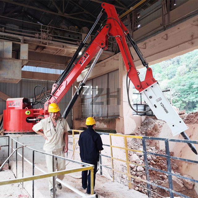 El sistema de auge fijo de resistencia del YZH tiene la característica prominente de requerir una pequeña posición de instalación para los brazos de trabajo de trituración hidráulica, y puede instalarse y operarse de manera flexible en un espacio limitado.