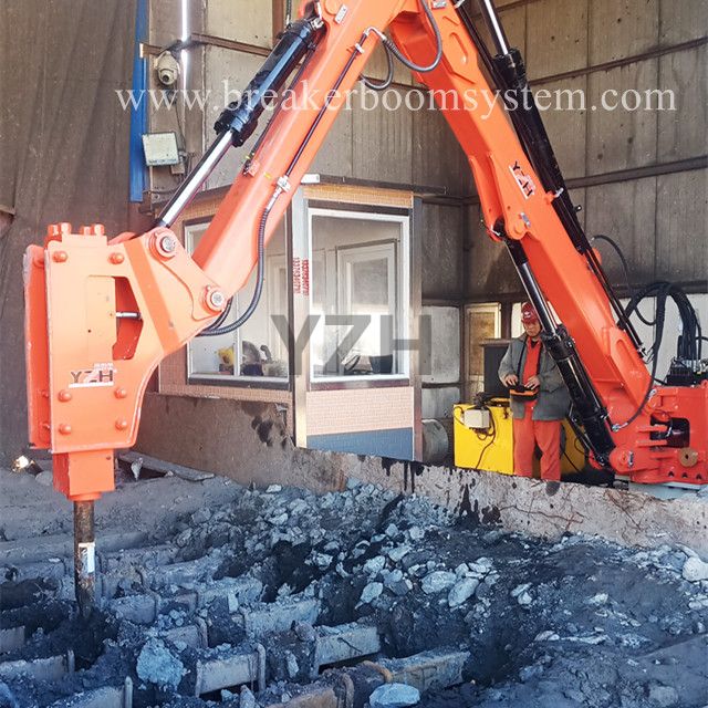 El sistema Pedestal Rockbreaker viene equipado con un Control remoto inalámbrico 2 en 1, permitiendo a los operadores administrar el equipo de forma remota con facilidad. Este sistema de control fácil de usar permite una operación perfecta desde una distancia segura, mejorando la seguridad de los trabajadores y minimizando el riesgo de accidentes en el sitio. El control remoto de doble funcionalidad ofrece modos de control estándar y avanzados, lo que brinda al comando completo a los operadores sobre los movimientos y acciones del sistema de ruptura de rocas de pedestal, lo que garantiza un rendimiento óptimo. A través de la imagen, se puede ver claramente que los trabajadores pueden controlar fácilmente el sistema de rompeolas de pedestal para trabajar para trabajar a través de un control remoto inalámbrico 2 en 1.